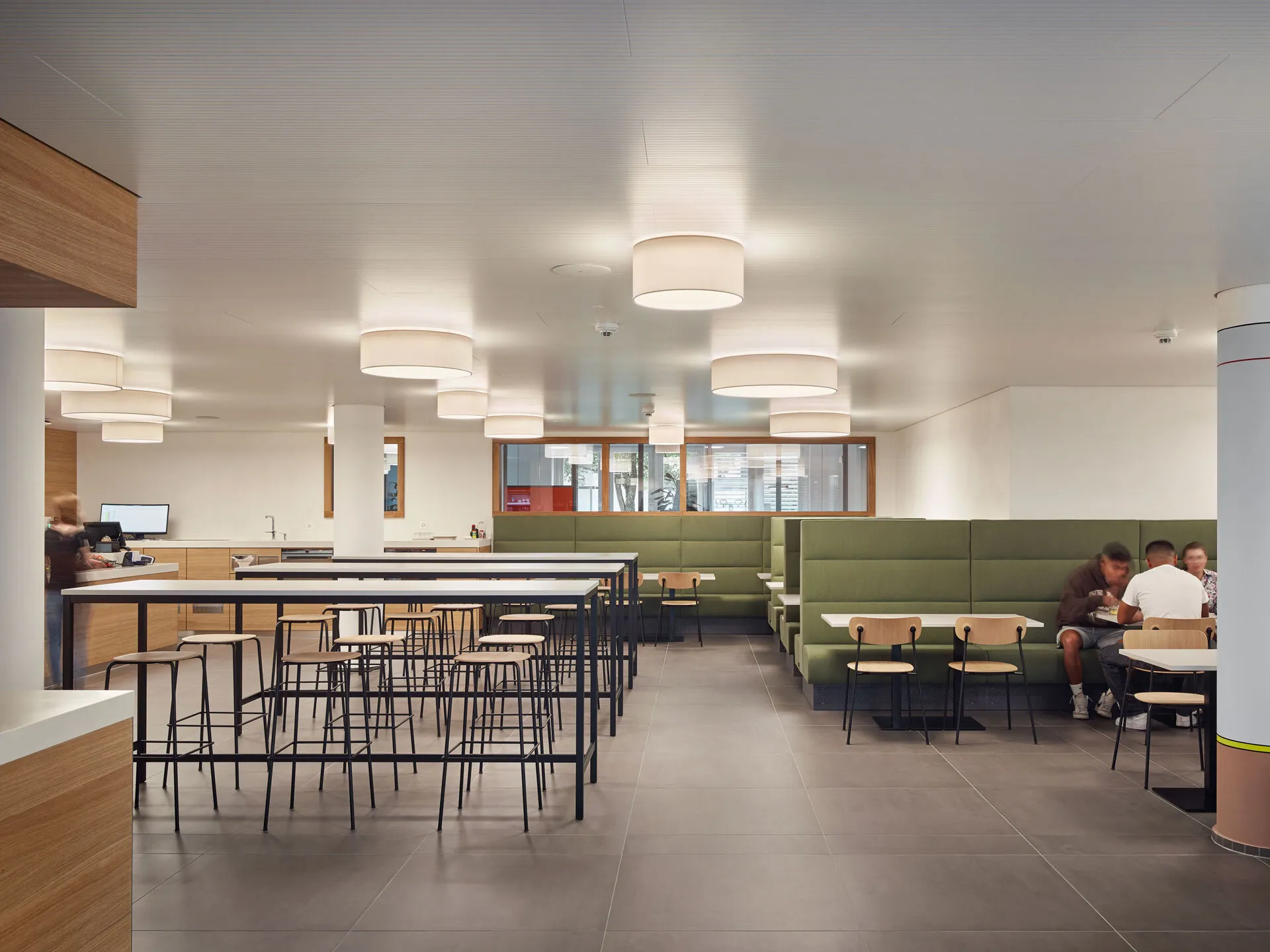 Umbau und Ausbau der neuen Cafeteria im Erdgeschoss.
