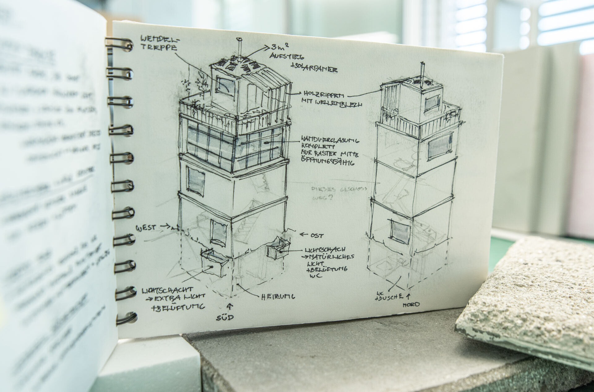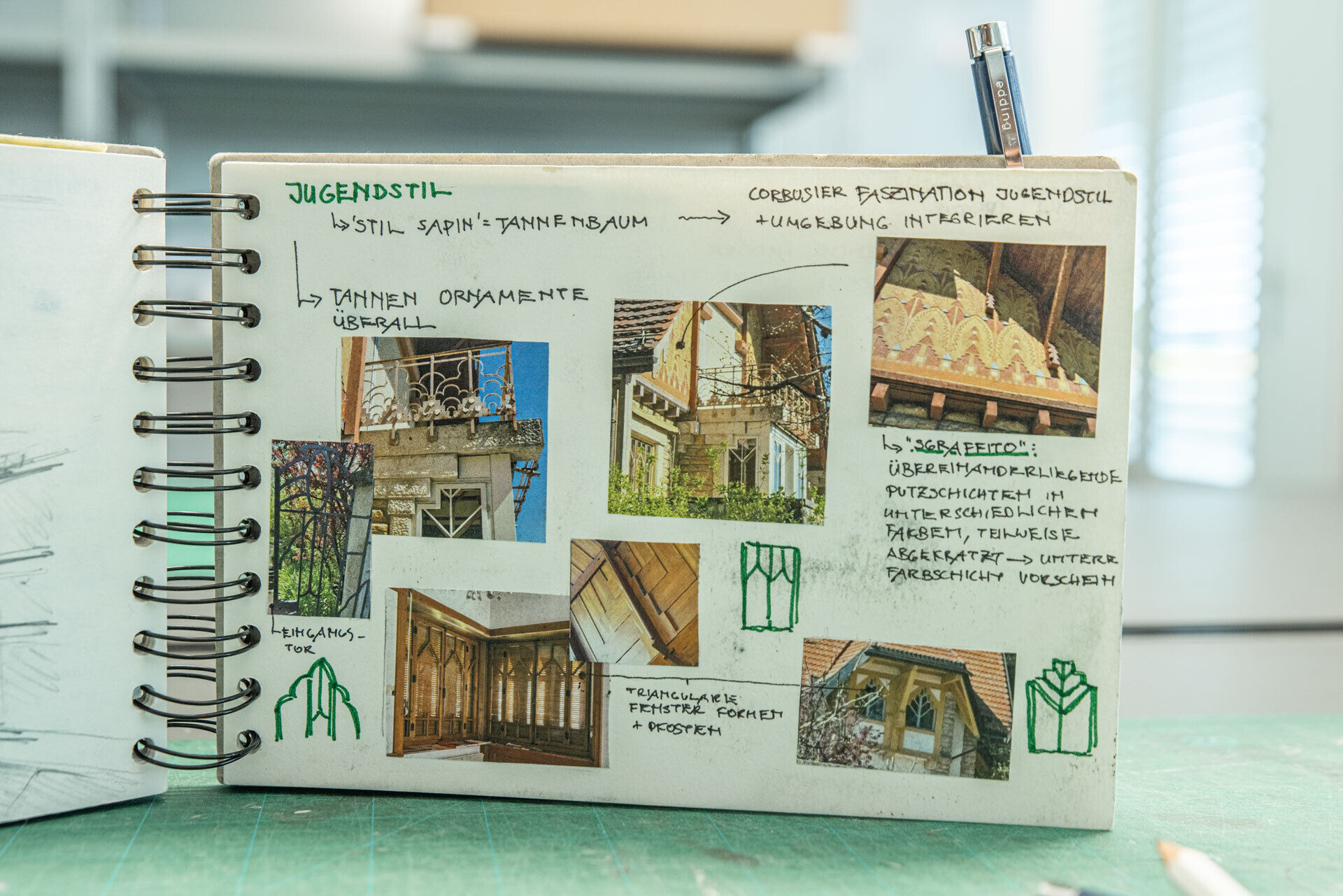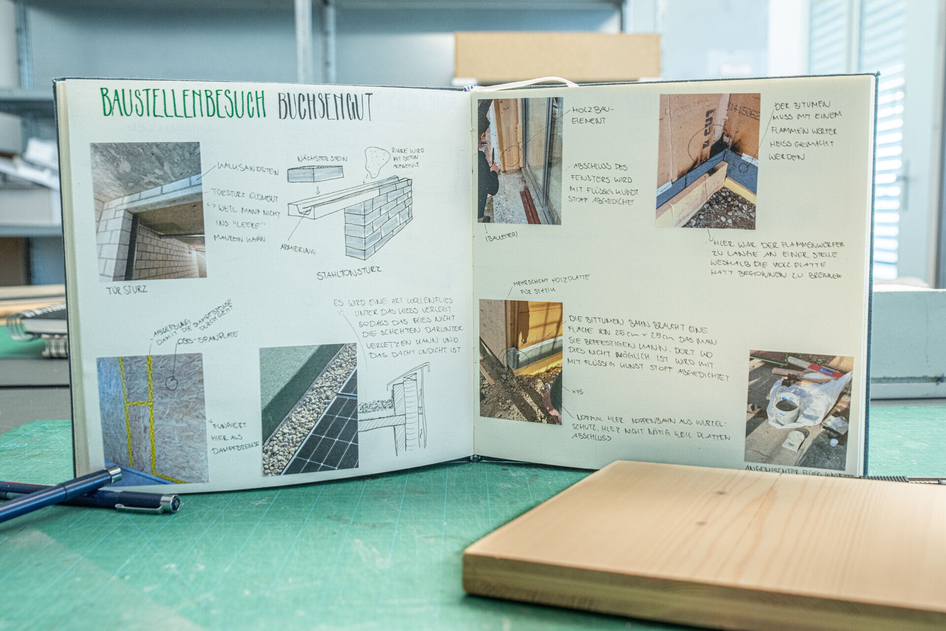 Das Arbeitsbuch – ein wichtiger Bestandteil der Ausbildung ZeichnerIn Fachrichtung Architektur. Die Einträge können von den Lernenden selbst gewählt werden. Konstruktionen aus dem Büro, Theorie aus der Schule oder Erfahrungen aus den ÜK’s, ergeben am Ende der Lehre ein individuelles Nachschlagewerk für die Zukunft. Ein kleiner Einblick in das Tun unserer Lernenden zeigt, dass die Arbeitsbücher gerne und regelmässig geführt werden!