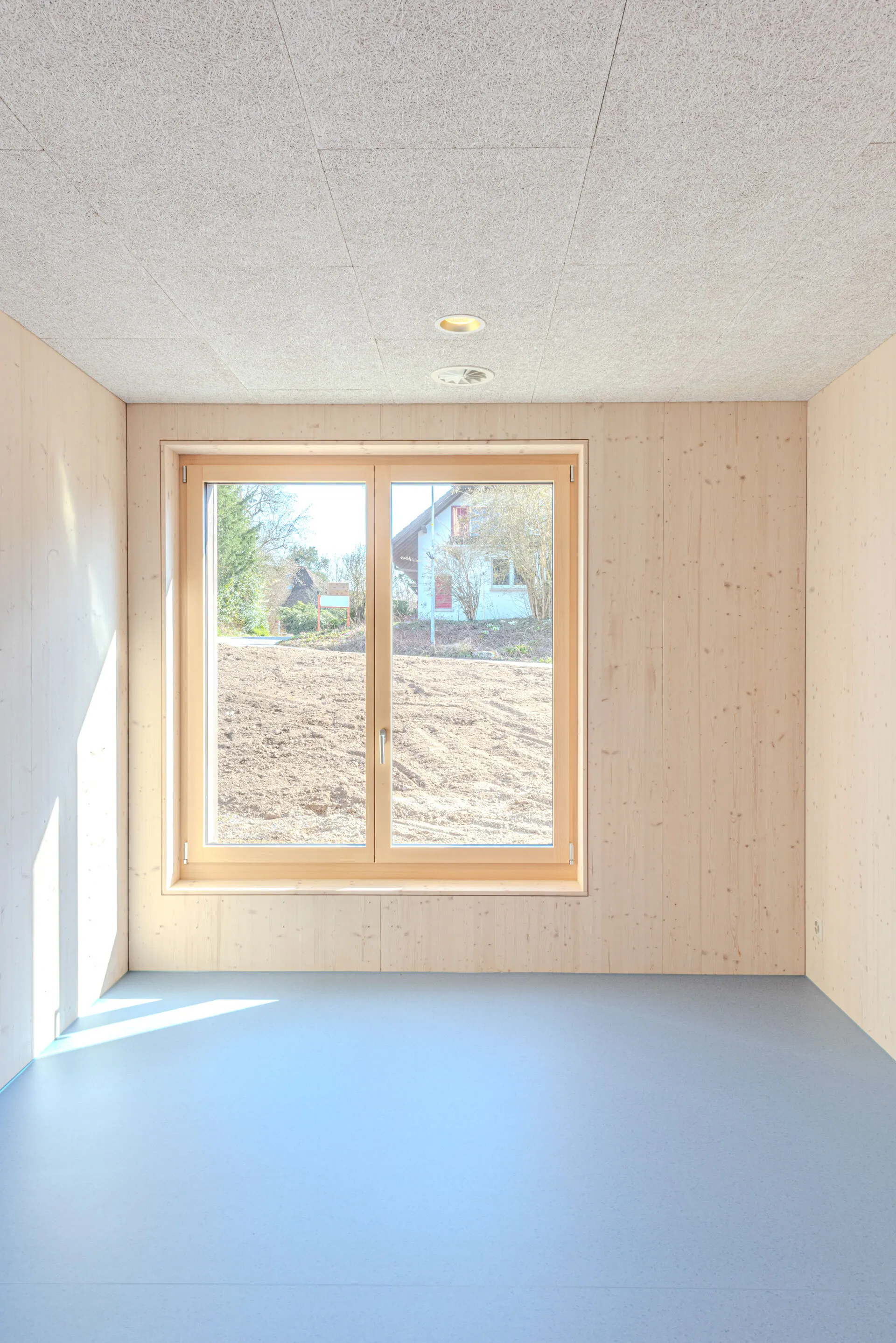 Ein dem Hauptraum zugeordneter Nebenraum unterstützt das Arbeiten in kleineren Gruppen und die integrale Förderung. Jeder Einheit ist zudem ein gedeckter Aussenbereich zugeordnet, der direkt erschlossen ist und den Innenraum erweitert.