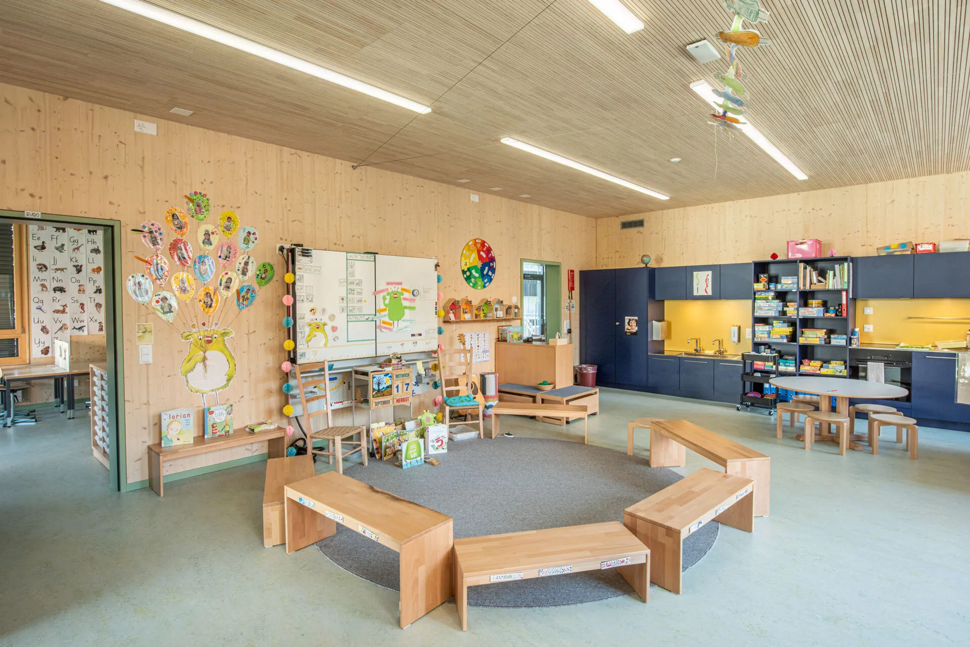 Der zweigeschossige Neubau an der Scheibenstrasse bietet Platz für zwei Basisstufenklassen. Die Raumstruktur mit den entsprechenden Aussenräumen ermöglicht einen zeitgemässen Unterricht entsprechend des Lehrplans 21. Das Schulhaus wurde über einer bestehenden, unterirdischen Einstellhalle errichtet und komplett in Holzbauweise ausgeführt. Durch den Neubau der Doppelbasisstufe als Erweiterung der Schule Breitfeld kann die Deckung des Schulraumbedarfs im Quartier langfristig sichergestellt werden.