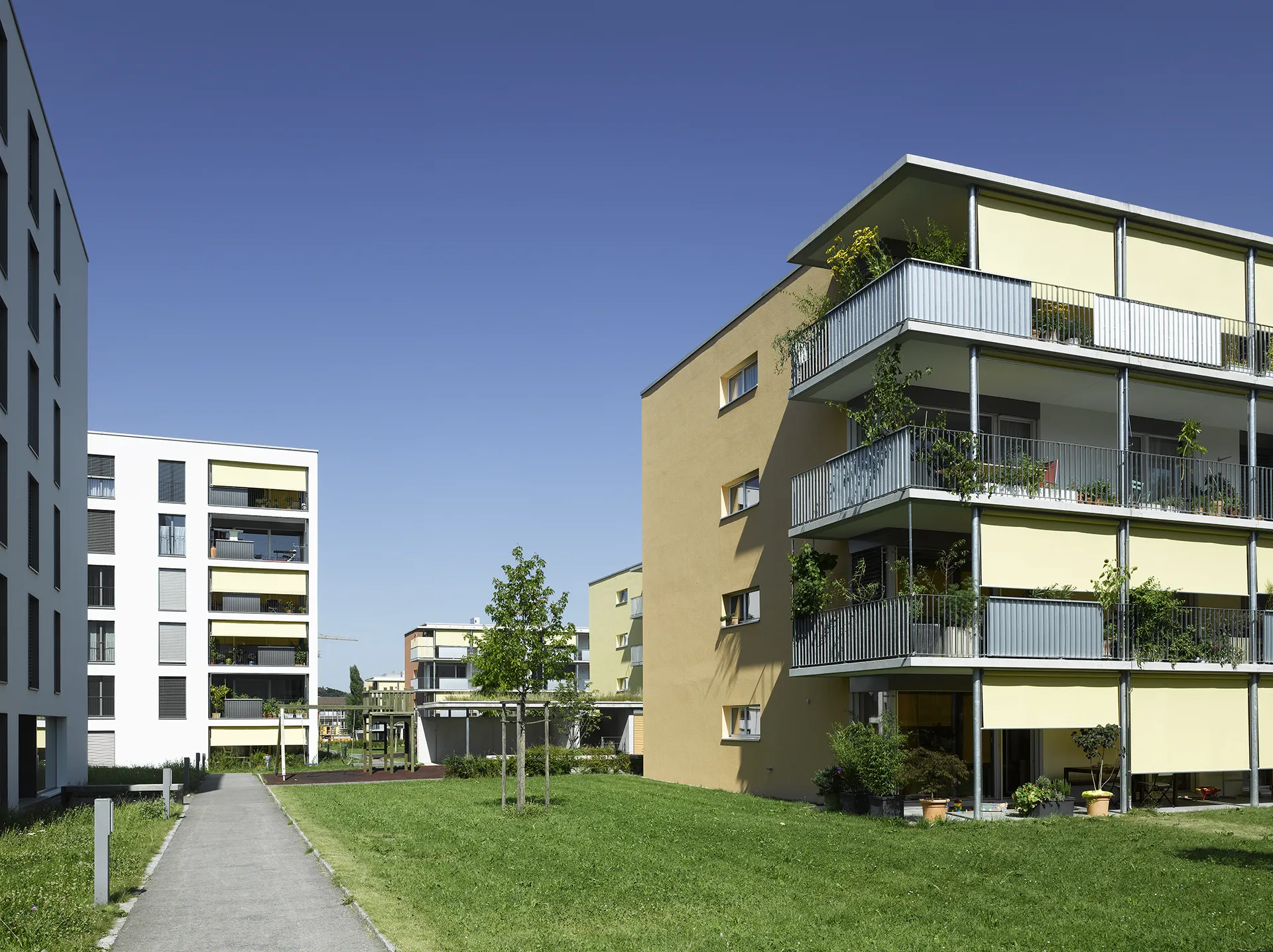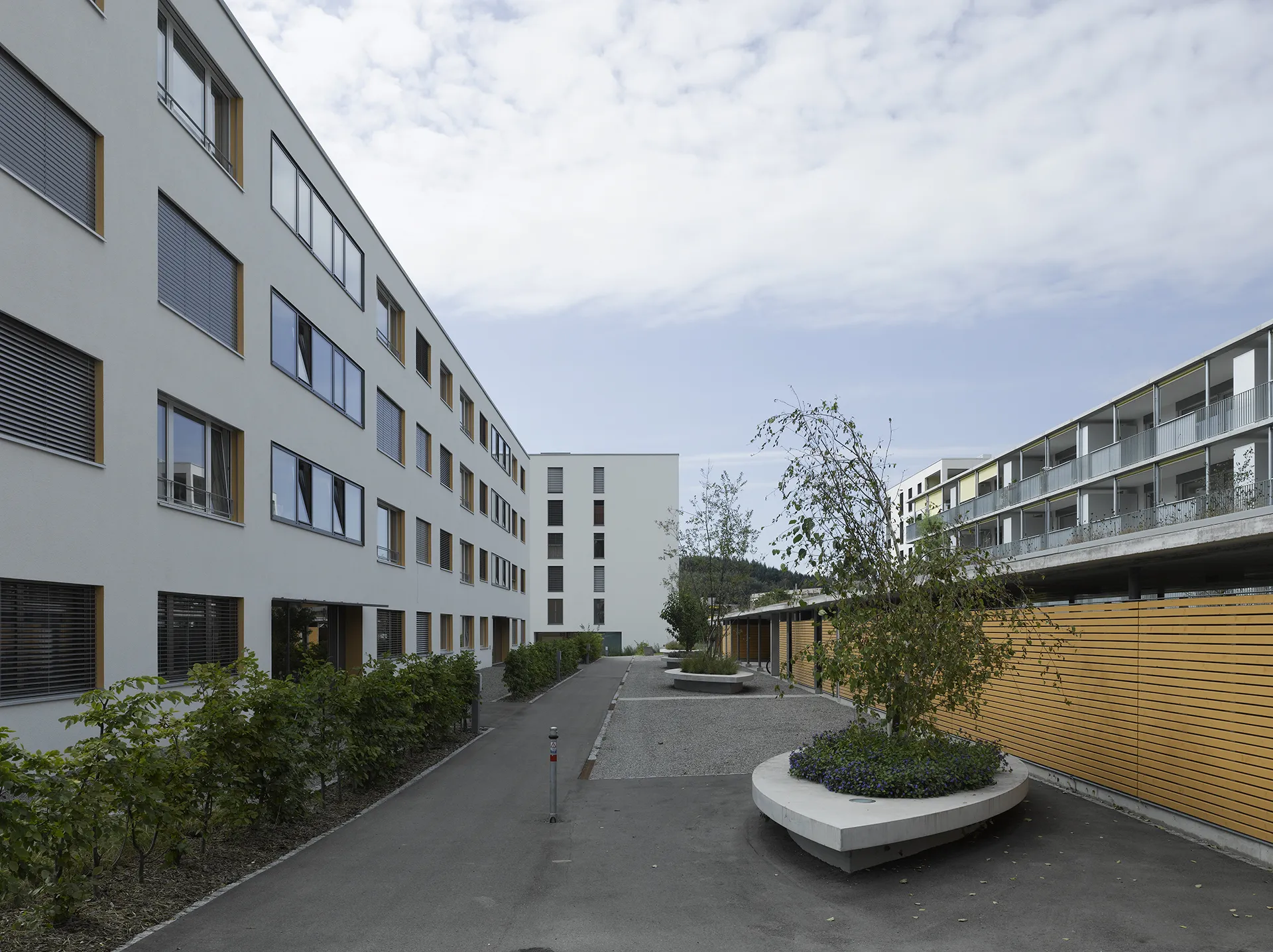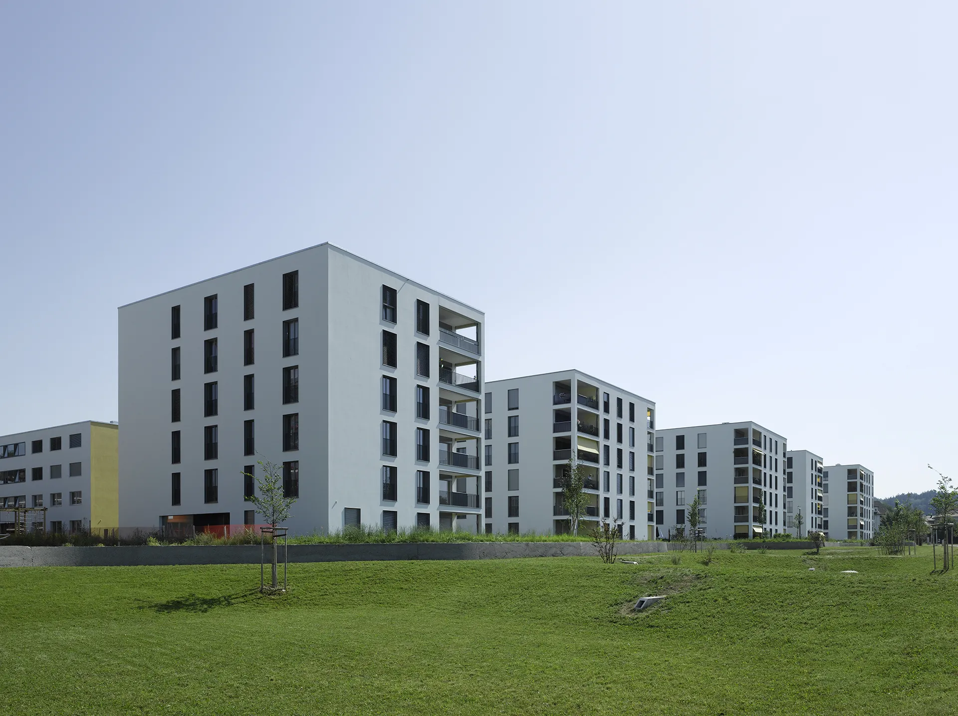 Insgesamt entstanden damit an optimal erschlossener Lage in fünfzehn Bauten 256 Wohnungen und 2 Atelierräume. Das differenzierte Wohnungsangebot von 1 ½ Zimmer bis 5 ½ Zimmerwohnungen generiert eine vielfältige Bewohnerstruktur im neuen Quartier.