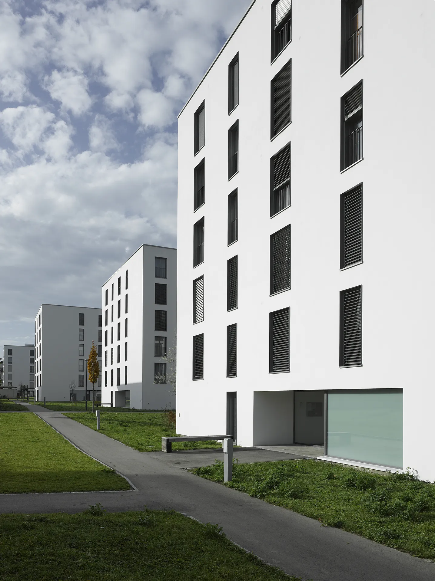Die Wohnungen verfügen über eine hohe Wohnqualität mit entsprechender Ausstattung, wie mehrheitlich durchgehende Wohnzimmer bei den Zeilenbauten oder zweiseitig belichtete Wohn- und Essräume bei den Turmbauten. Die Umgebungsgestaltung mit grosszügigen Wohnhöfen unterstützt das Gesamtkonzept.