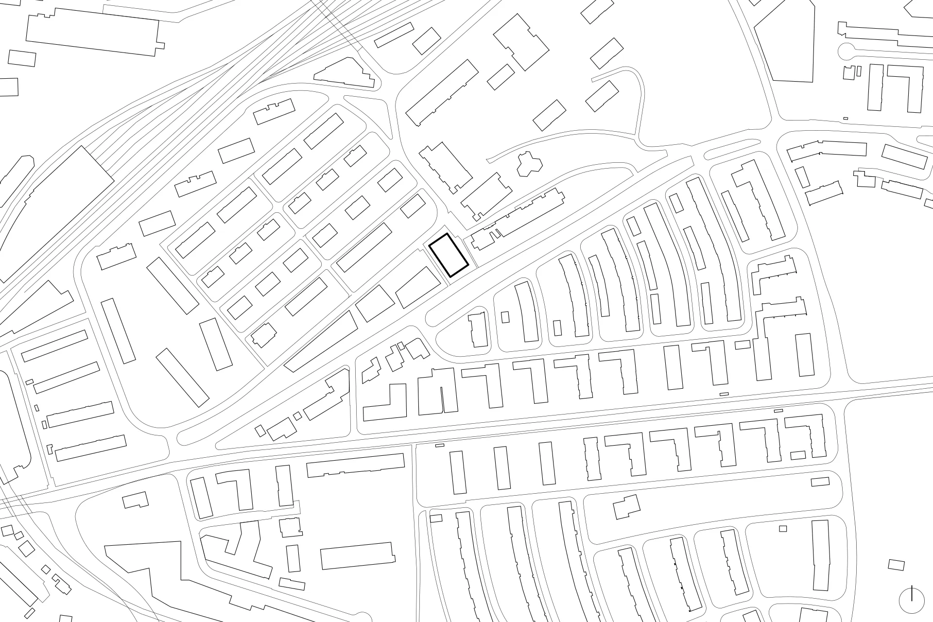 Der Neubau wird als Solitär ins Terrain eingebettet. Er schliesst auf selbstverständliche Art und Weise die städtebauliche Lücke zwischen den bestehenden Gebäuden an der Freiburgstrasse.
