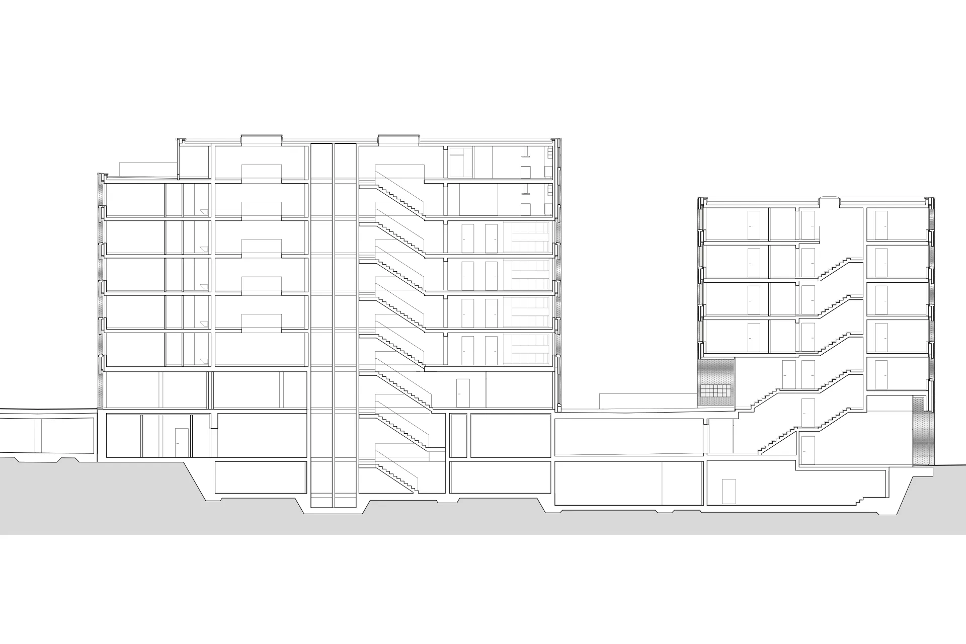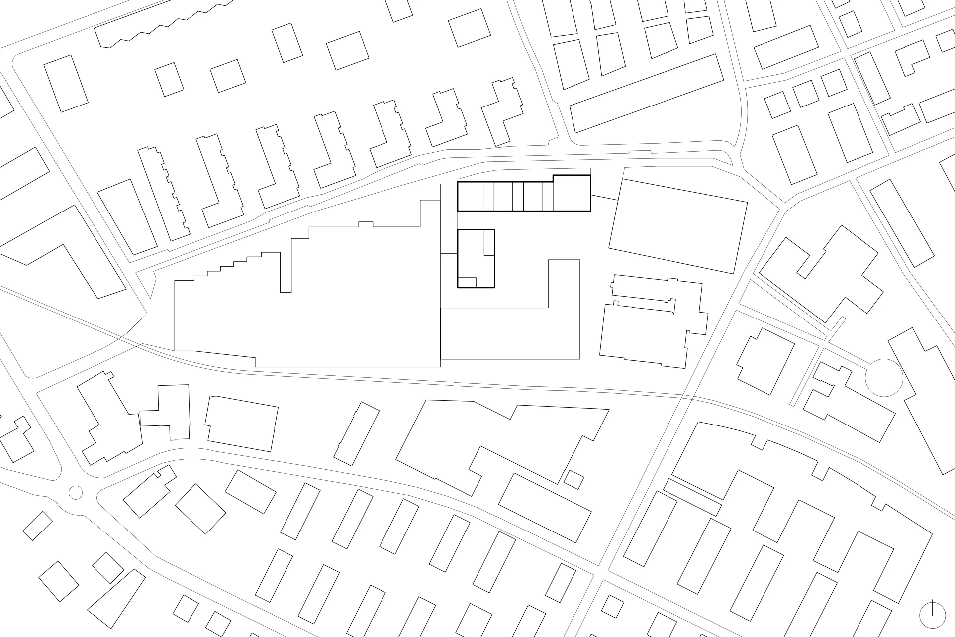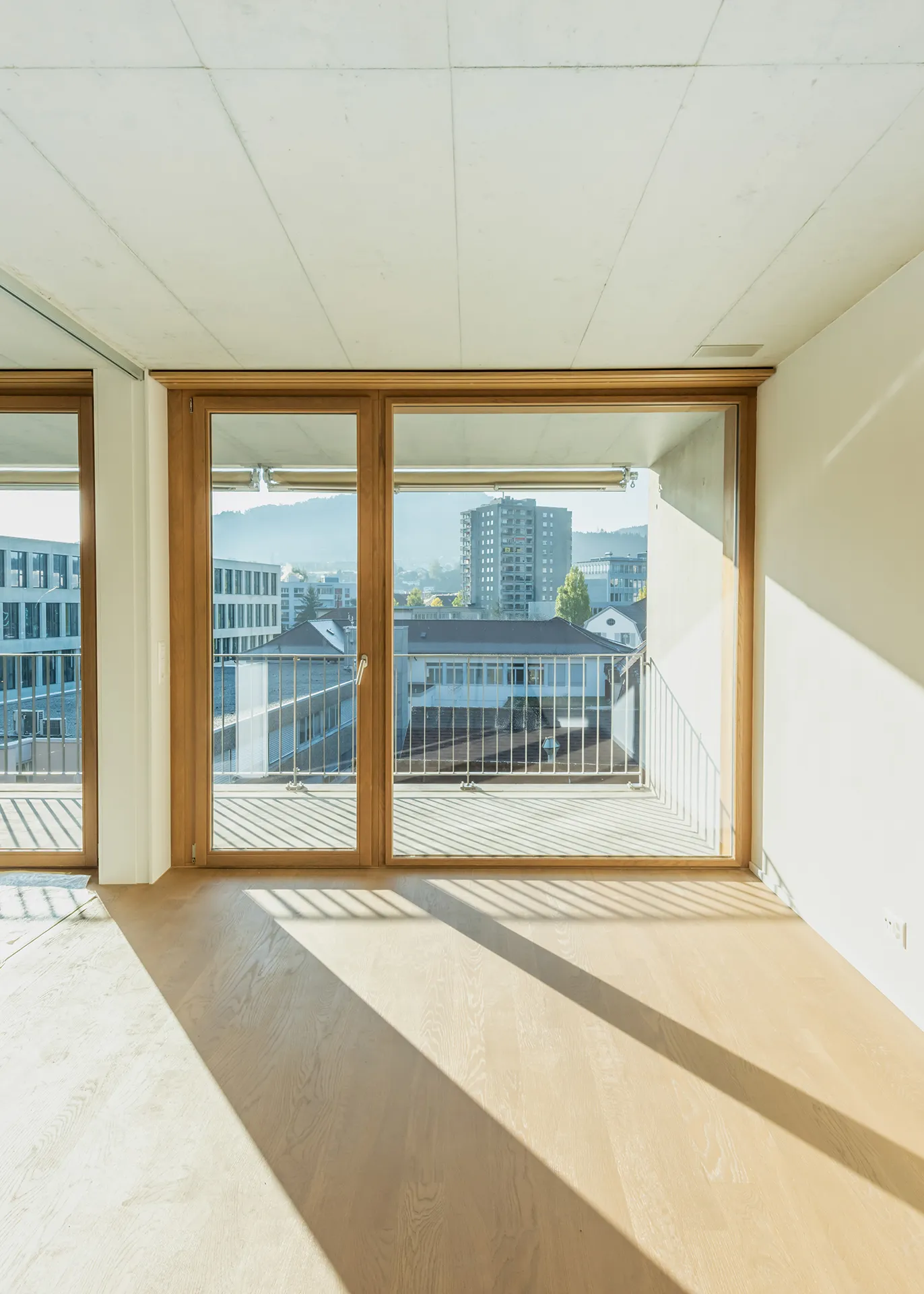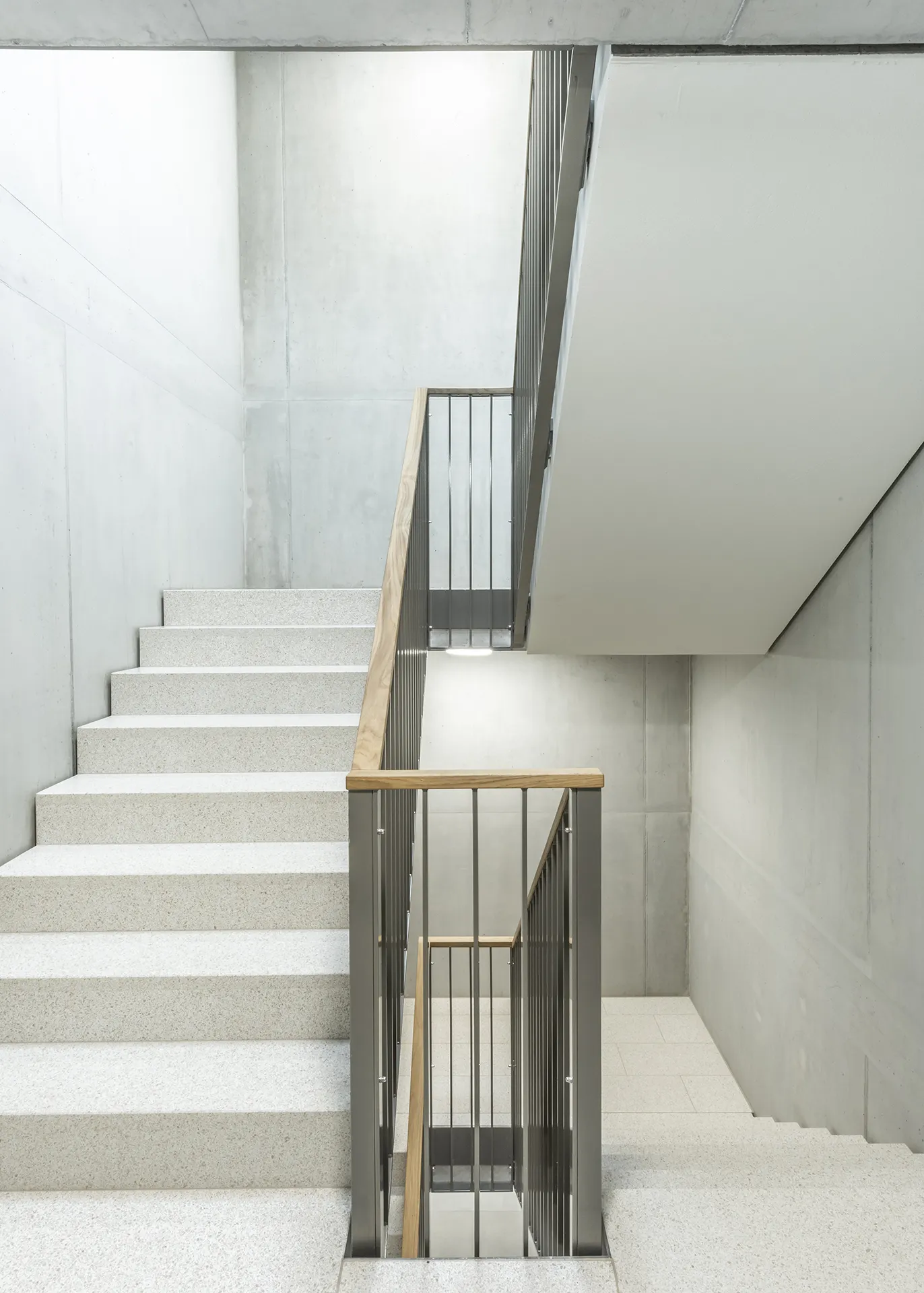 Die Volumetrie und Situierung der Baukörper entwickelt sich aus den Vidmarhallen. Vier Baukörper positionieren sich um einen zentralen Platz und verbinden die beiden gewachsenen Industrieareale, Carba und Vidmar, miteinander. Durch die zurückhaltende Materialisierung in Sichtbeton und Sichtmauerwerk erhalten die Neubauten einen eigenständigen Ausdruck und fügen sich harmonisch in die benachbarten Industrieareale Vidmar und Carba ein.