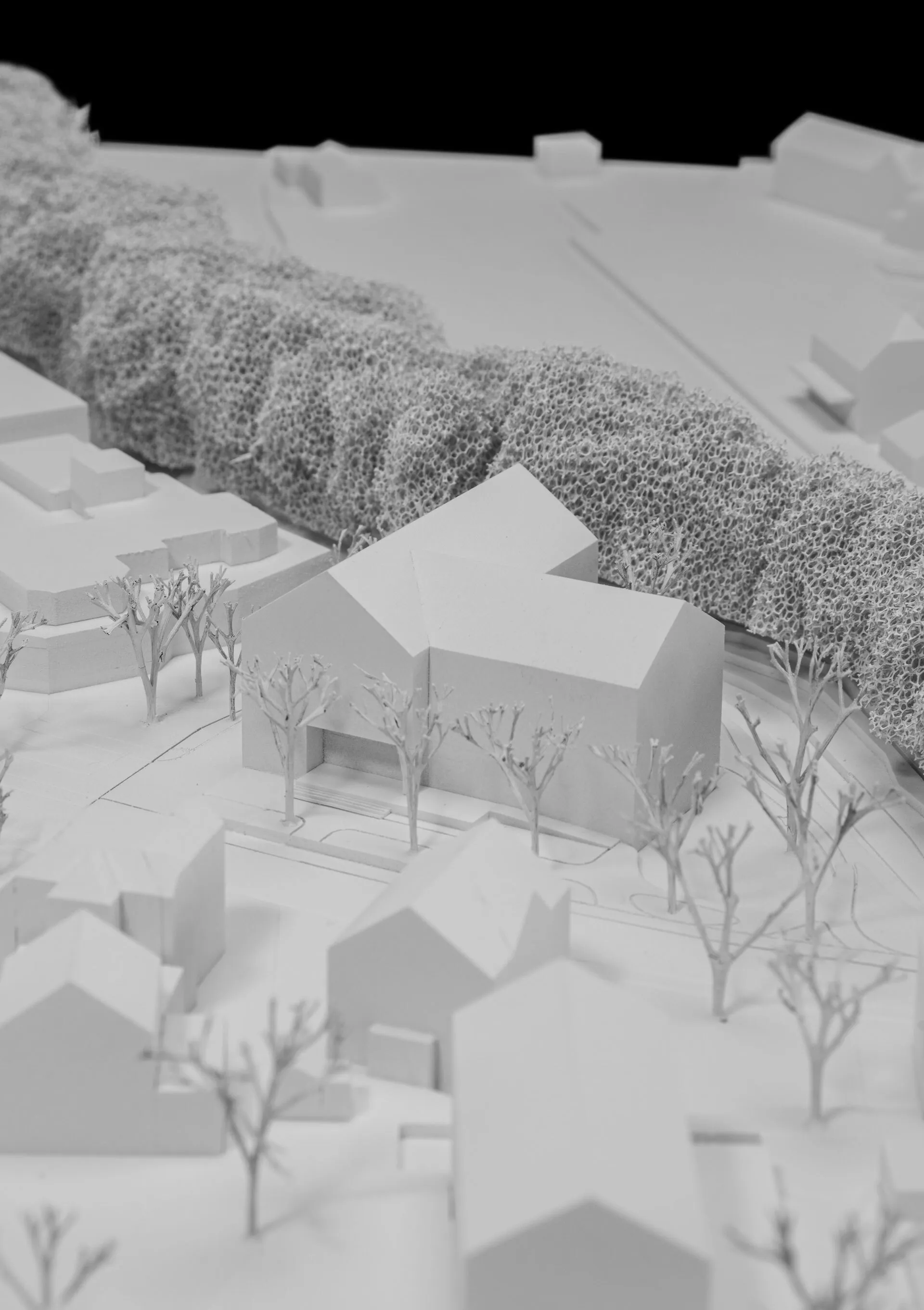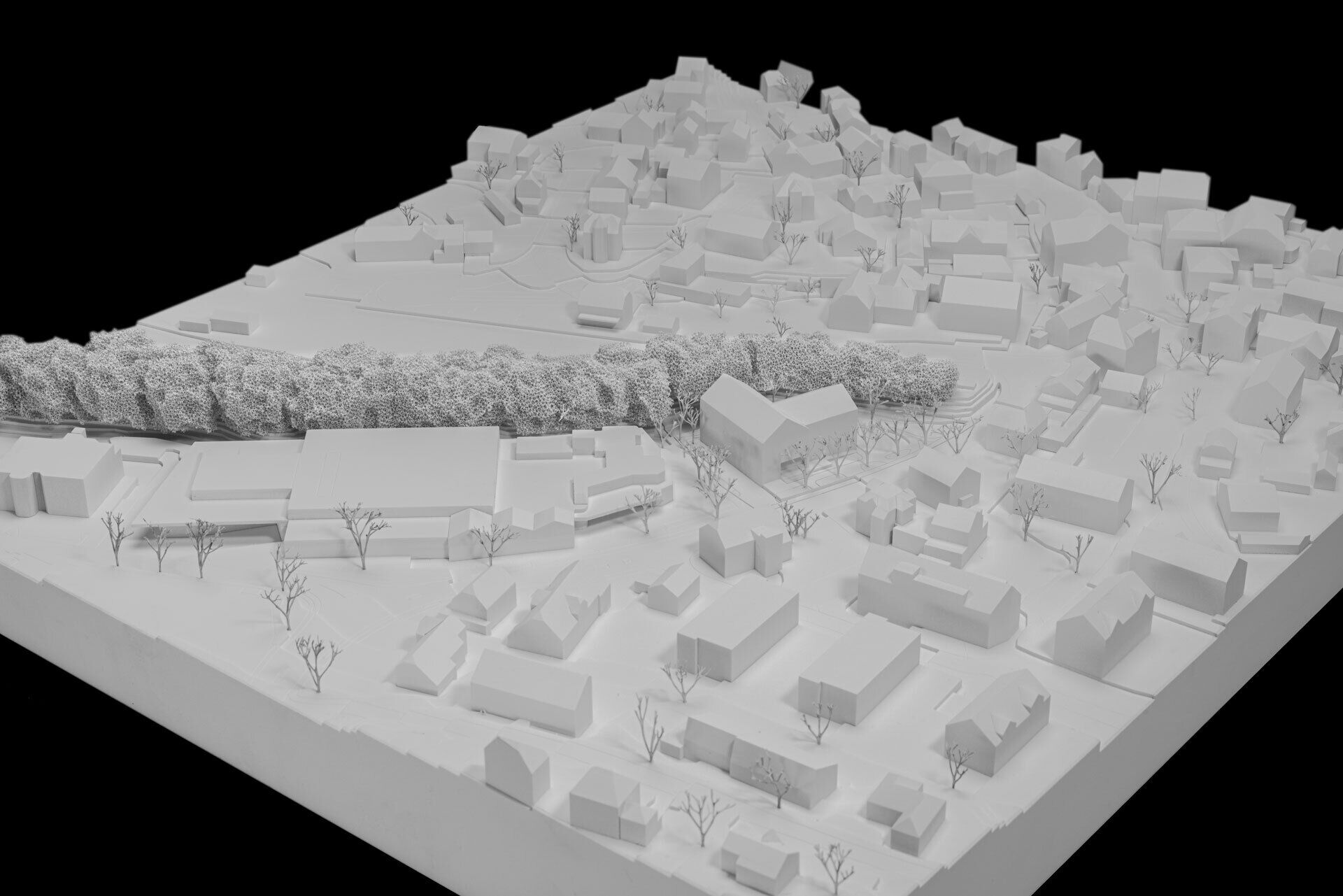 Das Areal "Walki" liegt im Zentrum von Schwarzenburg, in unmittelbarer Nähe des Bahnhofs und des historischen Dorfkerns. In diesen geschichtlich und räumlich sensiblen Kontext wird das neue Wohn- und Geschäftshaus der Raiffeisenbank eingebettet. Die Planung erfolgt in enger Zusammenarbeit mit der kantonalen Denkmalpflege und orientierte sich an einer präzisen Ortsanalyse, die die Erhaltungsziele des ISOS berücksichtigt.