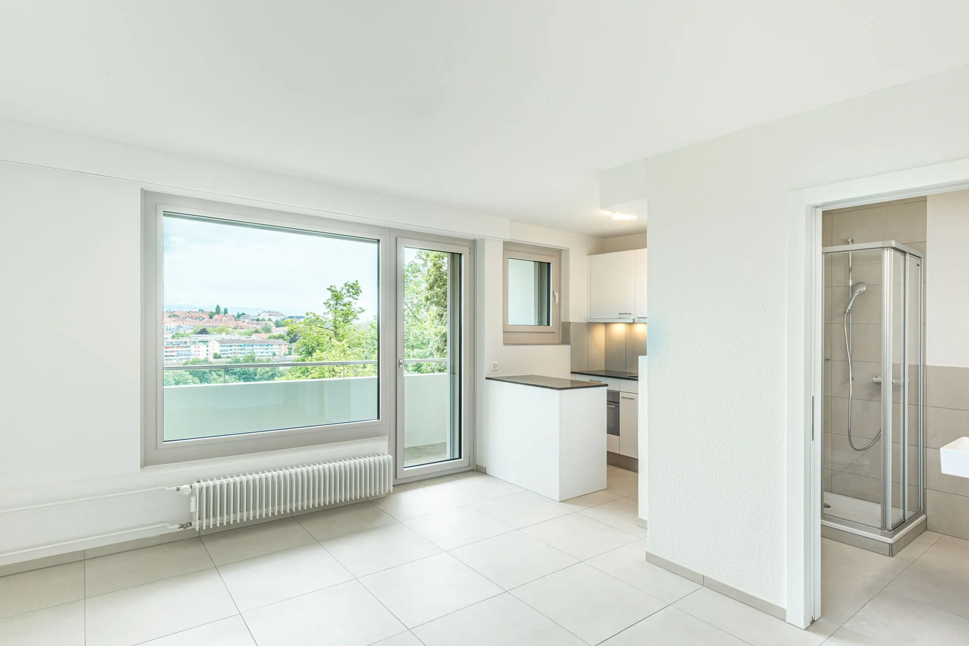 Das Gebäude steht an der Hangkante mit Blick über die Aare sowie ins Lorrainequartier und Richtung Berner Oberland. Die Liegenschaft aus dem Jahr 1961 wird einer Gesamtsanierung unterzogen.